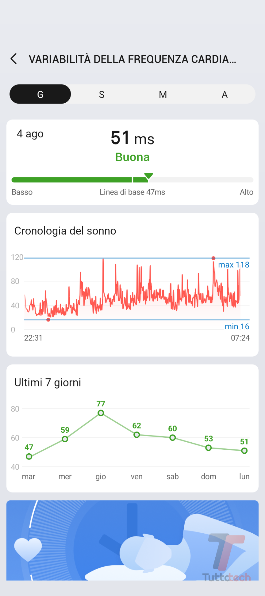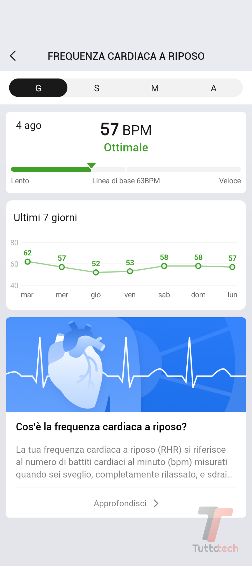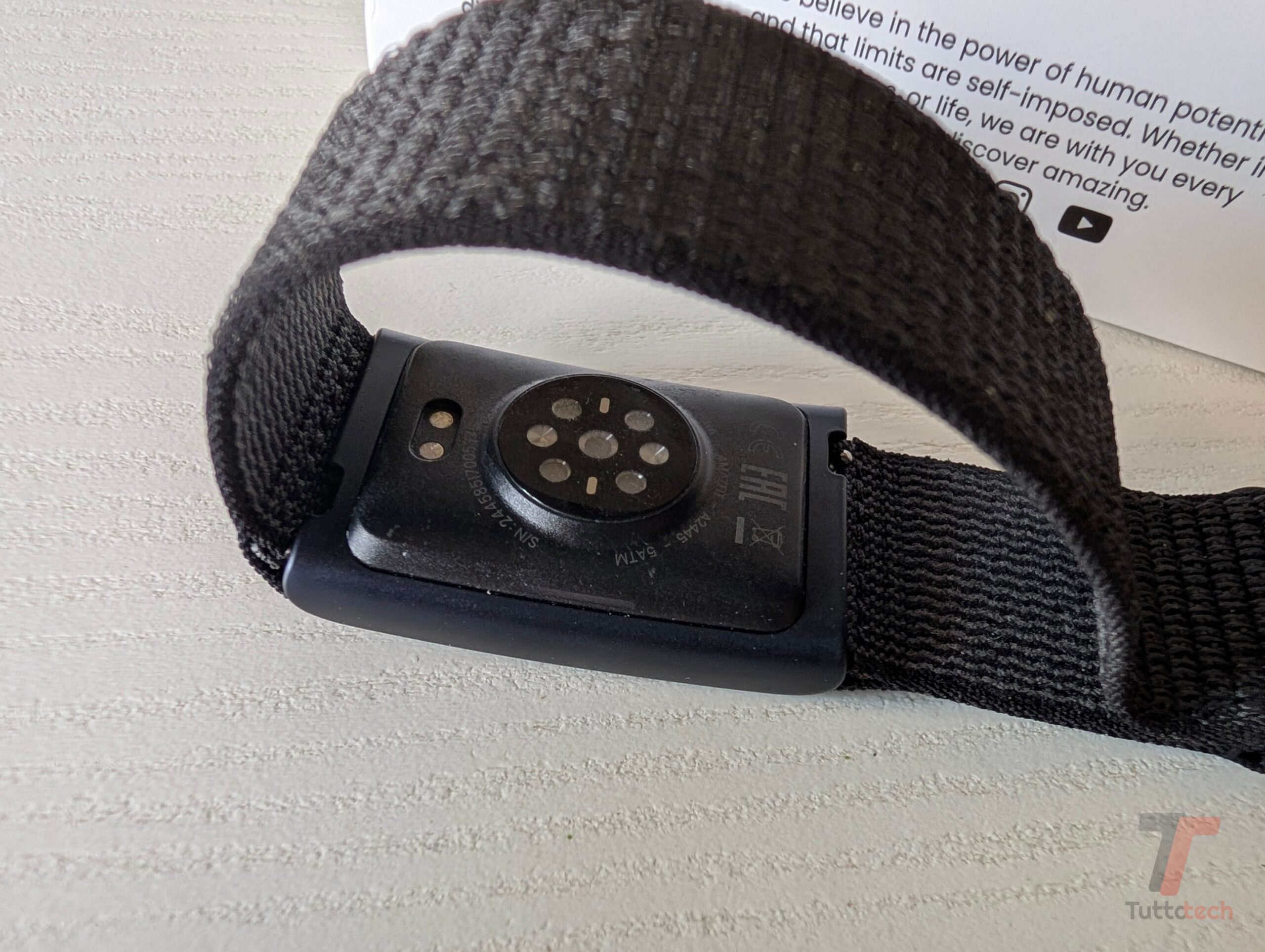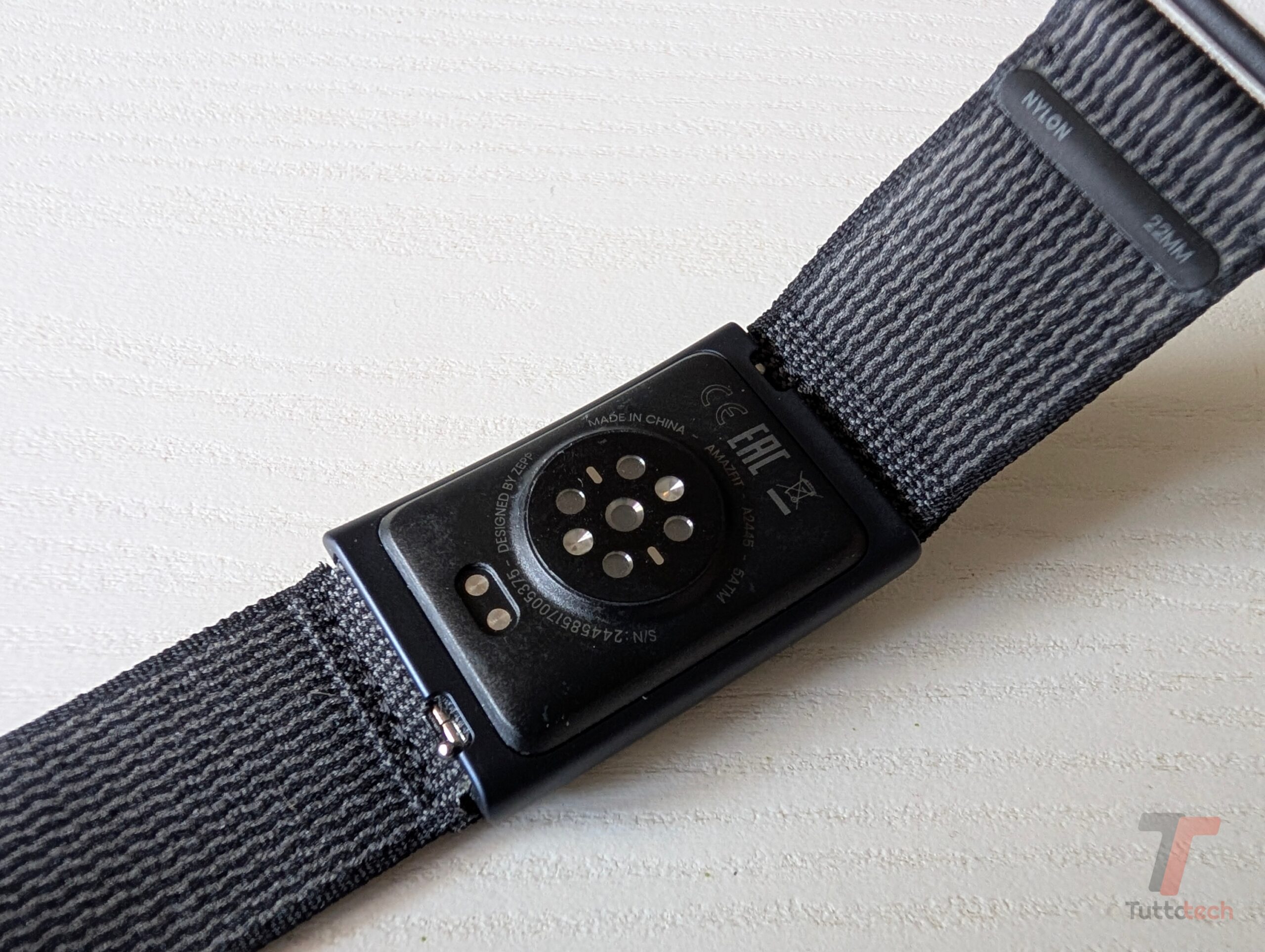 Parleremo di lui in maniera veloce e meno approfondita del solito e saltando alcuni aspetti perché è in sostanza un Amazfit Balance 2 senza tutta la parte smart, senza il display e senza il microfono, gli altoparlanti, il barometro, il GPS e tutti gli altri componenti minori legati alle funzioni smart. Lui dentro ha una batteria, un accelerometro, un giroscopio, un sensore di temperatura cutanea, il Bluetooth 5.2, un motorino per la vibrazione per la sveglia e la batteria scarica, un LED per segnalare gli stati della carica e soprattutto ha il nuovo sensore BioTracker 6.0 PPG, lo stesso dell’Amazfit Balance 2. È per questo che tutti i dati che lui registra sono identici a quelli che registra l’altro: sport, sonno e parametri vitali sono gli stessi poiché provengono dal medesimo hardware e quindi è superfluo ripetere le stesse cose; vi invitiamo perciò a dare un’occhiata alla recensione dell’Amazfit Balance 2, dove abbiamo trattato questi aspetti con la giusta attenzione. Preferiamo dare rilievo alle cose in più che lui possiede e alle differenze, che sono senz’altro da approfondire.