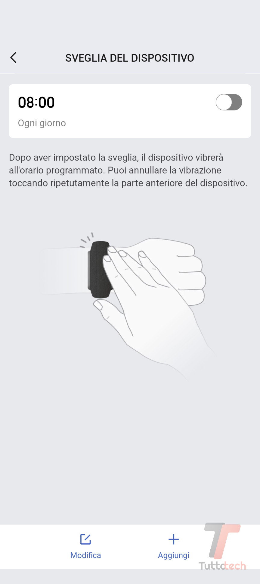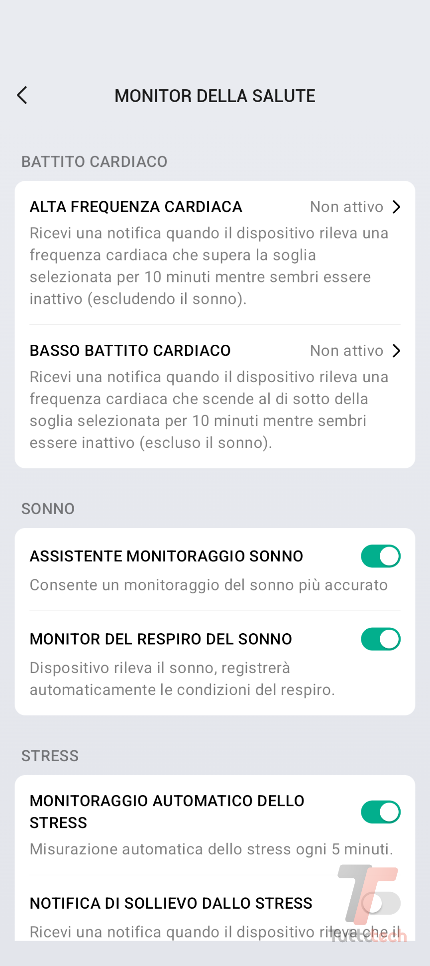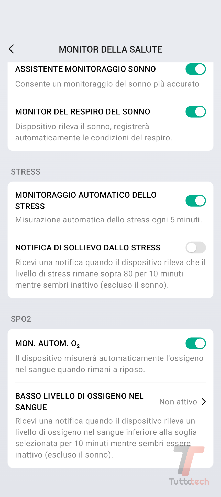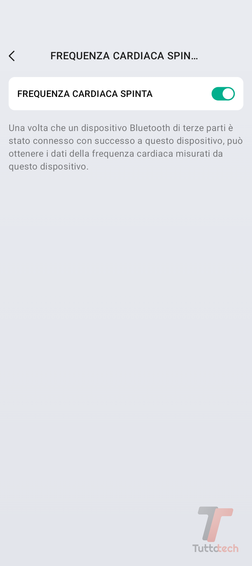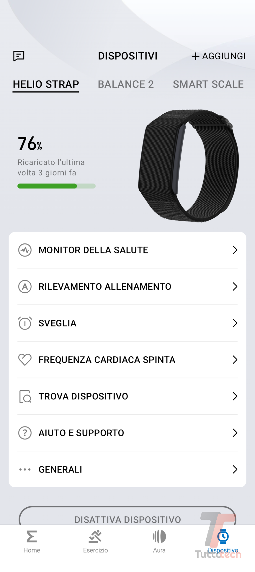 Oltre al BioCharge, Amazfit Helio Strap di diverso rispetto all’Amazfit Balance 2 ha anche l’autonomia perché include una batteria decisamente più piccola da appena 232 mAh e poi non è dotato di display e funzioni smart. E, infatti, lui offre un’autonomia di una decina di giorni, su per giù, con il monitoraggio 24 ore su 24 dei parametri vitali e di circa 12 ore di sport a settimana, almeno nel nostro caso; poi ci sarebbero tutti i soliti discorsi da fare sull’autonomia perché varia in base a decine di fattori, però lui, ecco, di sicuro 7-8 giorni li fa. Si ricarica in poco più di un’oretta tramite la basetta proprietaria con pin e, purtroppo, neanche lui è dotato della ricarica a induzione. All’interno dell’applicazione lui non offre chissà quale personalizzazione perché c’è giusto qualche opzione per la sveglia, per la sensibilità del rilevamento dell’attività, per attivare/disattivare il monitoraggio dell’SpO2 e dello stress e per agire su qualche altro parametro.