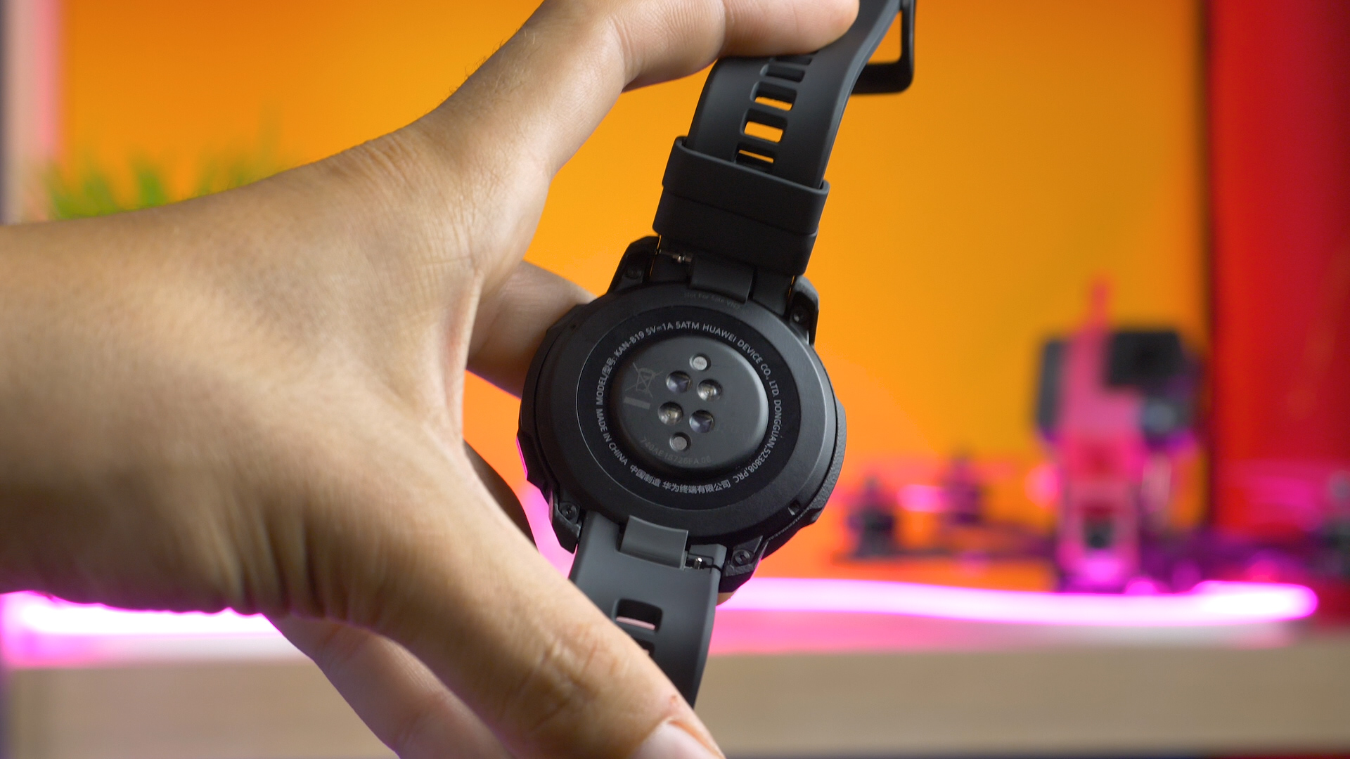 Nella parte inferiore della scocca notiamo la sensoristica all’avanguardia di Honor GS Pro. Oltre ai contatti per la basetta di ricarica spiccano infatti il sensore per il rilevamento del battito cardiaco e quello per misurare l’ossigenazione e saturazione del sangue. Tramite questi il nostro orologio sarà inoltre in grado di valutare la qualità del nostro sonno e il livello di stress nei vari momenti della giornata.