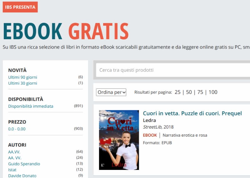 IBS.it chiude la carrellata dei migliori siti per scaricare libri gratis, forte del brand (fa parte del Gruppo Feltrinelli) e di un’offerta molto variegata. Tutti gli eBook che vanno a comporre il catalogo gratuito del portale IBS sono in formato ePub, dunque si possono facilmente leggere sia su computer che su smartphone o eReader. Inoltre, non si ha alcuna difficoltà a distinguere il contenuto a pagamento e quello libero perché quest’ultimo è etichettato dalla parola Omaggio.